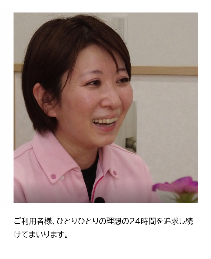 一つの家族として、穏やかに安心して毎日を過ごしていただくようスタッフ全員か心を込めて365日24時間、その方の生き方に寄り添い、地域で暮らすお手伝いをいたします。