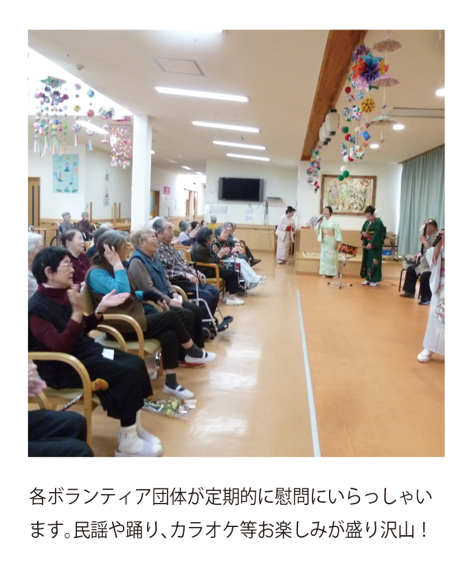 竿燈まつりをはじめ、お花見や豆まきなど、季節に合った行事や、音楽コンサート、民謡などのボランアティアグループのイベント等をお楽しみいただけます。