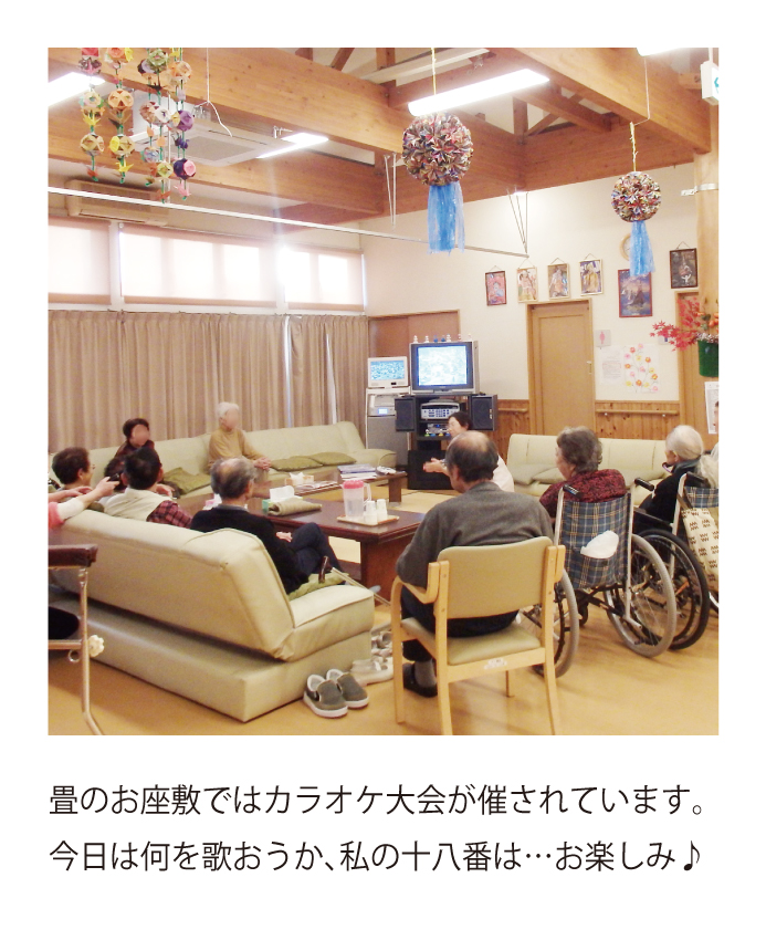 「新しい出会い」と「新たな輝き」をきららデイサービスで!日帰りのケアで、お風呂やカラオケ、楽しい食事、体操、レクリエーションで明るく楽しく元気に、そして安らぎの1日をお過ごしいただけます。老化防止のためのリハビリや学習療法にも積極的に取り組んでいます。緊急時や時間の延長、お泊りなどにも対応させていただきますので、お気軽にご相談ください。