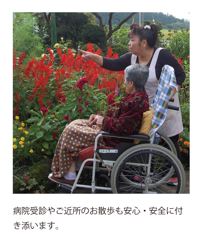 - 日常生活動作能力や意欲向上のためにご利用者様とともに行う自立支援のためのサービス