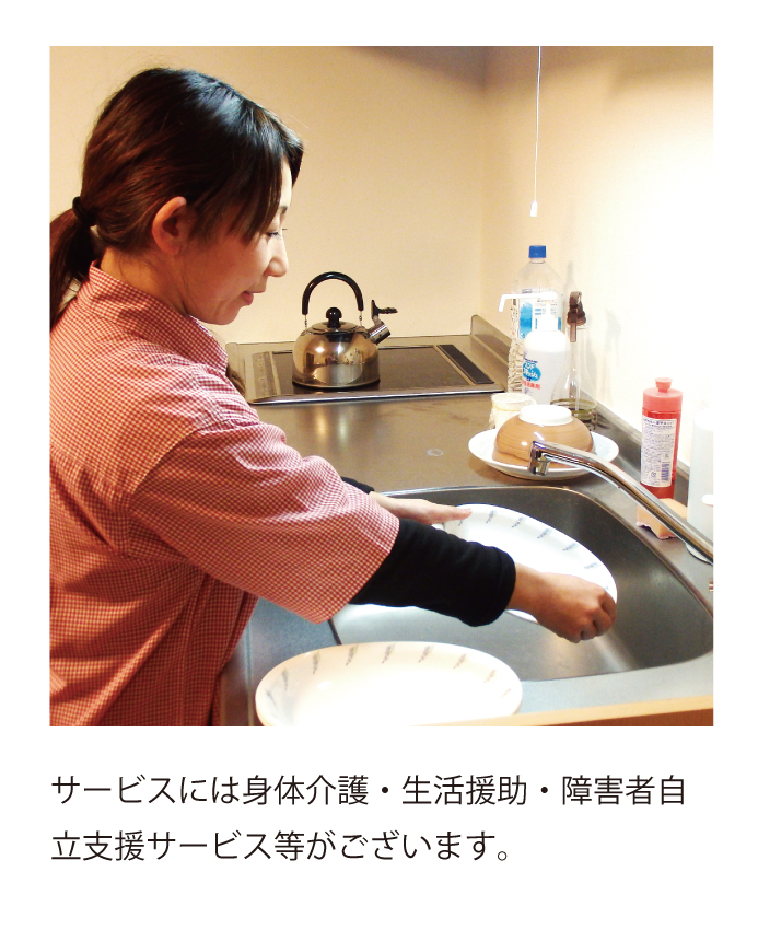 訪問介護サービスは、訪問介護員(ホームペルパー)がご家庭を訪問し、日常生活のお手伝い[身体介護・生活援助]をさせていただくサービスです。有資格者のスタッフが、ケアプランに基づき、安心してご利用いただけるサービスです。